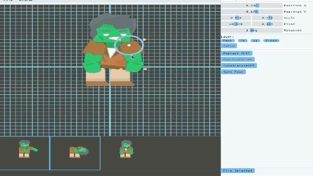 (If you missed the first post: this is my in-progress 2D posing and animation tool — built to let artists pose characters in seconds, swap art, flip between saved poses, and export PNG spritesheets.)